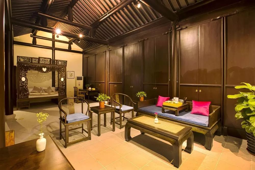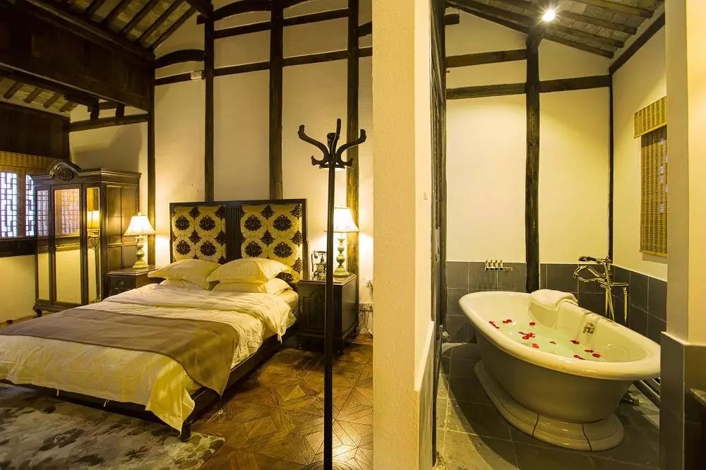 这里三面清溪环抱,过去是船商富户泊岸休憩聚会的地方,如今则成就了这家按会所级别打造的酒店。宜园拥有私人码头,你可以让乌篷船送你到想去的任何地方。