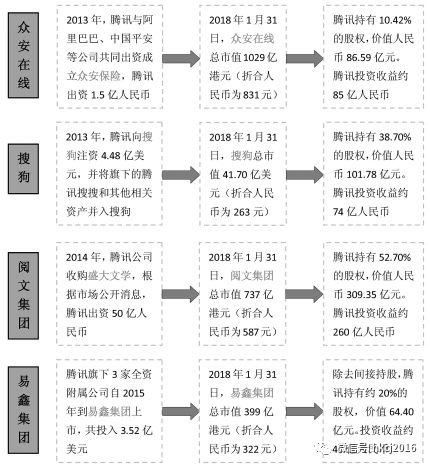 图4 2017年下半年4家参股公司上市为腾讯公司带来超过460亿元投资收益