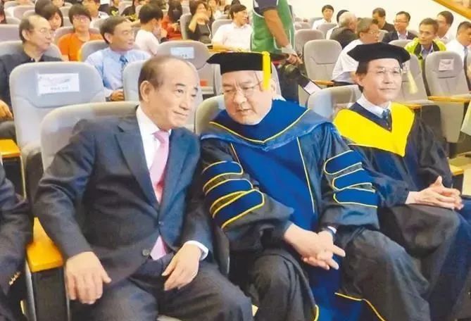 台前“立法院长”王金平(左)与尹衍梁(中)师生之谊