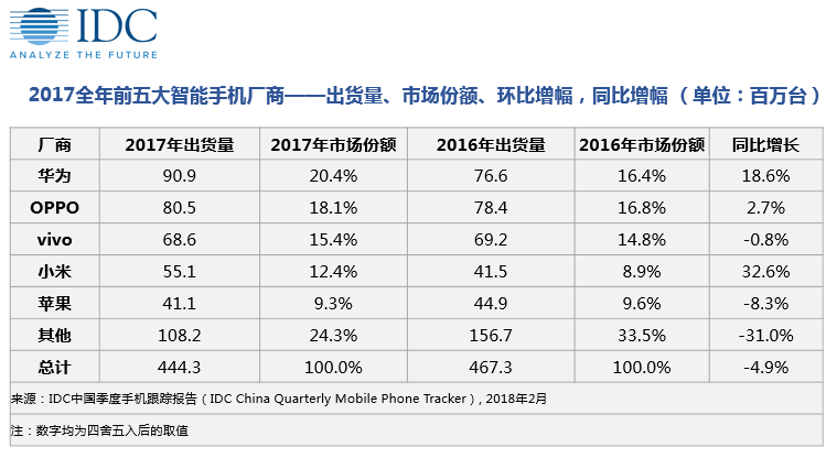 这个演讲公布了小米的新目标:10个季度内,国内市场重回第一,尽管IDC中国手机市场2017年度报告显示其去年仅位列中国手机市场第四,出货量为5510万部,市占率为12.4%,与中国手机市场排名第一华为的9090万部相差3580万部;市占率20.4%相差8个百分点。