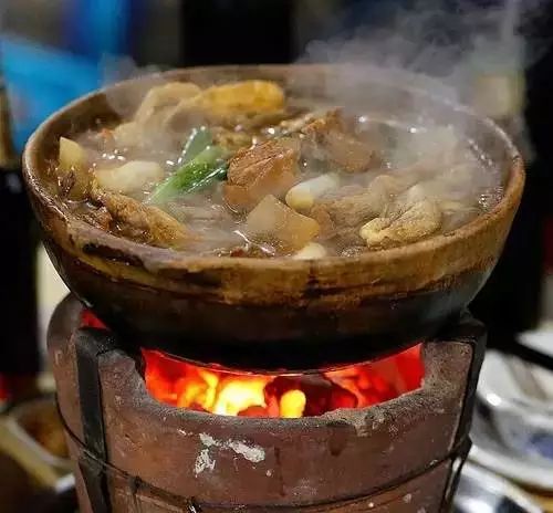 广东的羊煲,可不是架个电磁炉就能开吃的普通火锅,必得要小炭炉才行。