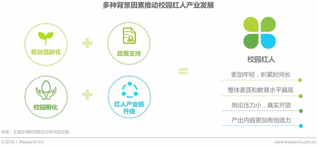 从另一方面来说,校园红人的发展是伴随着整个红人产业的发展进行的。从2015年红人经济的起步,到2016年直播元年,伴随着红人经济的爆发式增长,随之而来的是一些类似于低俗、千篇一律的负面标签。校园红人的出现不仅更容易被用户接受,且将红人产业带向了高素质、高学历、有特色的正面方向发展,使得整体红人经济产业链得到升级。
