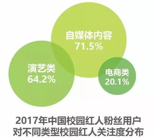 4、校园红人的粉丝用户普遍年轻且具有消费潜力,其带有的特点能够与校园红人完成明显适配。总体粉丝用户中女性用户占比偏多,自媒体内容类校园红人最受粉丝欢迎,关注度达到71.5%。校园红人粉丝消费观念较为先进,容易被“种草”式的营销手段吸引。