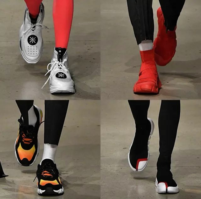 此次亮相的产品中,最受瞩目的是两双鞋子,一款名为“重燃”的高帮鞋款,另一款则是以悟道2代为蓝本进行重新解构的运动鞋,两款鞋子均采用机能风设计。纽约时装周展示过后,这两款产品已经在李宁电商平台上进行公开限量发售。