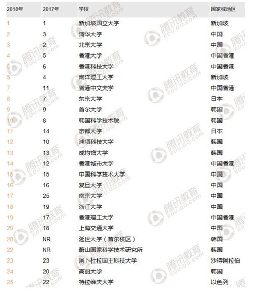 泰晤士高等教育2月7日发布了2018年亚洲大学排名,新加坡国立大学、清华大学、北京大学排名亚洲前三位。这已是新加坡国立大学连续第三年登顶。