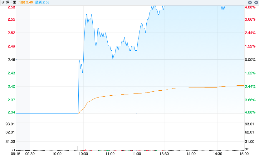 截至8日收盘,ST保千里报2.58元/股,涨4.88%,成交额为6.58亿元,换手率达到26.69%。