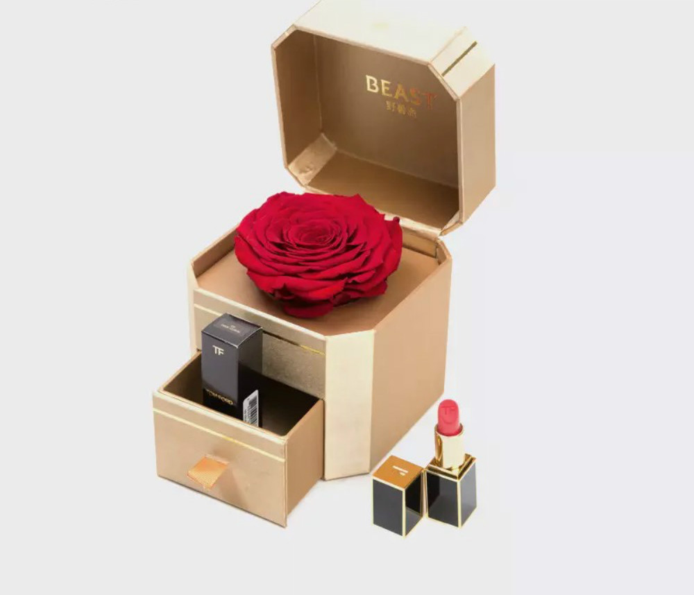 情人节送花这件事几乎已经是全人类的共识了,国内品牌THE BEAST野兽派的永生花今年出了多款联名,比如THE BEAST野兽派 X BVLGARI宝格丽情人节永生花香水皮盒和THE BEAST 野兽派X Tom Ford烈焰幻魅永生花盒,风格多样,朱砂痣还是白月光都能找到自己心水的。