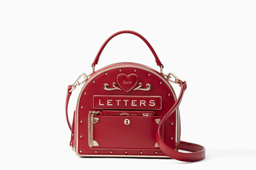 如果一定要在耳环、高跟鞋和包包中选一款,包包会是个得分高的选项,虽然都是心型和红色两种设计元素,但这款像背包其实是提包的红色手袋看起来不一样,如果现在还没断货,多半是因为快递休假。