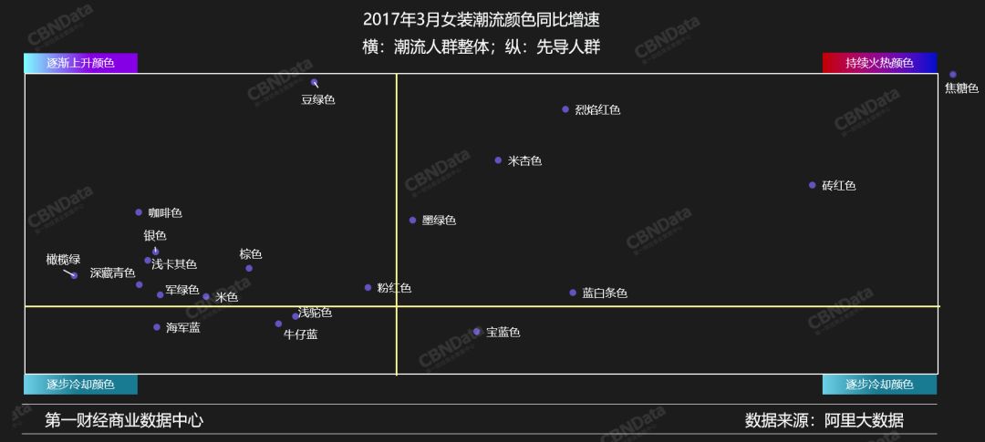 我们再来看市场上正在流行的几大色系。易于搭配的焦糖色和活泼复古的砖红色正受到消费者青睐,但马莎百货却忽视了它们。不仅如此,它还将逐渐遇冷的宝蓝色推荐为店铺主打商品。由此看来,除了人群定位不够明确,马莎百货对于中国流行风向的感知可能也有些迟缓。