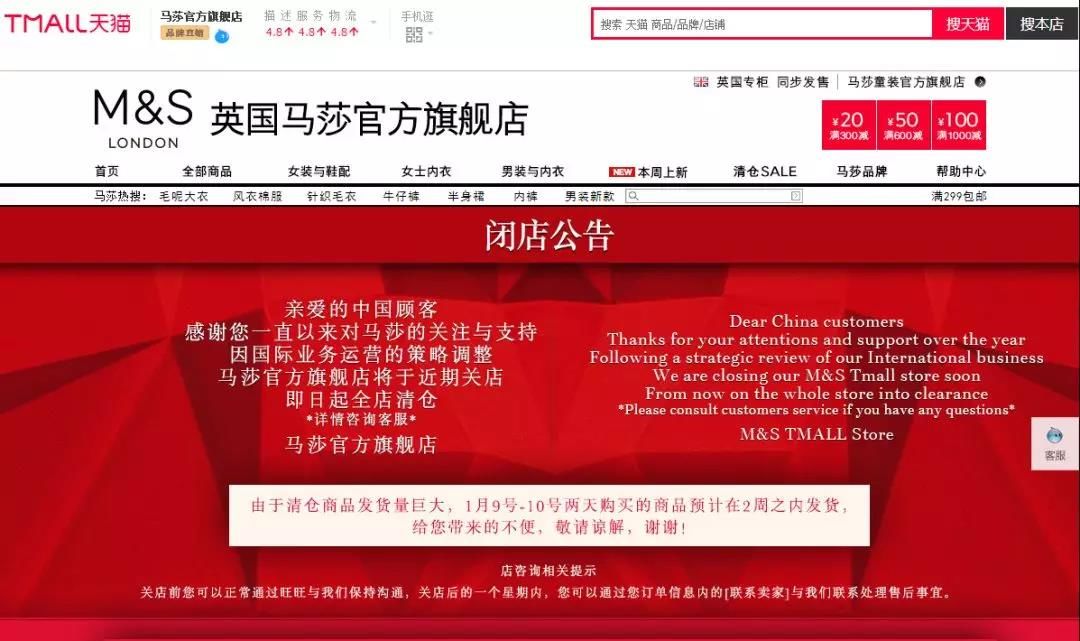 进入2018年以来,女装行业最大的新闻之一,莫过于马莎百货全面退出中国市场。继2016年下半年宣布关闭中国内地的10家商铺后,马莎百货在中国的最后一块阵地,天猫旗舰店,也在2018年伊始,就贴出了《闭店公告》,全场2折起的清仓甩卖当时吸引了大量消费者前来抢货。
