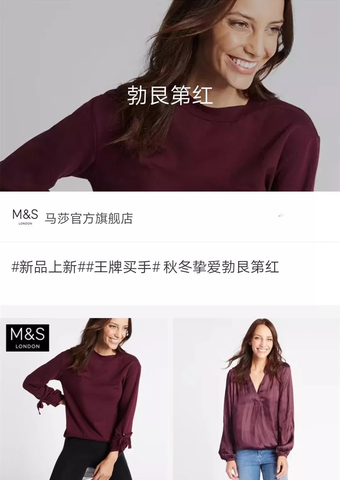 前不久,M&S官方旗舰店推出了秋冬新品,主题色系为”勃艮第红”。洋气的名字令人不明觉厉,实际上这是一种比酒红略深的颜色。