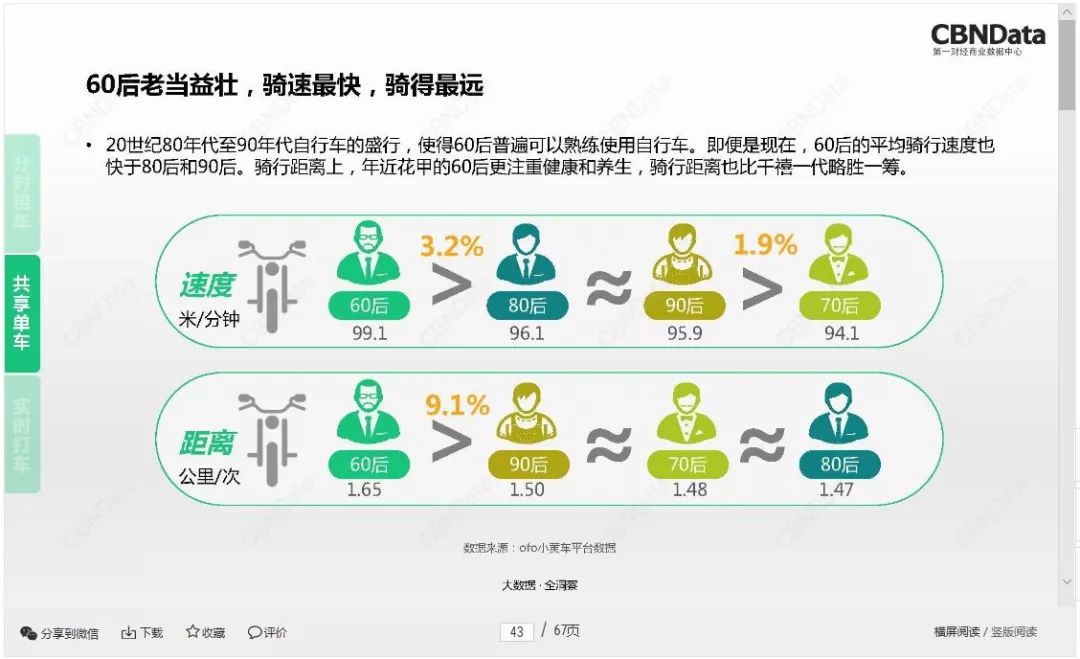 CBNData此前发布的《2017中国共享出行行业大数据观察》中,就有明显的证据:60后更注重健康和养生,骑行距离也比千禧一代略胜一筹。所以买点利于他健康的礼物,可能更能深得欢心。