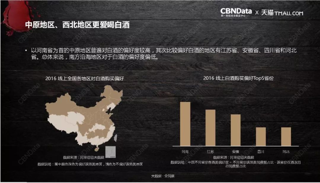 此外,南方北方的饮酒偏好也有所不同。北方和中原地区,更爱传统的白酒,如果是去河南、江苏、安徽、四川、河北拜访,买白酒基本不会出错。