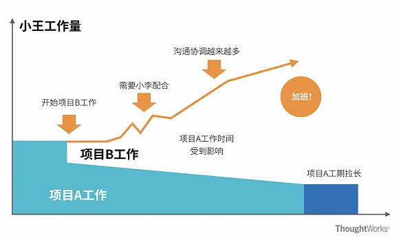 你是一位IT管理者,小王是一位认真负责的开发人员。一天他告诉你,现在项目A上他的工作进入尾声了,接下来只需要占用他一半的工作时间。这样的情况下,小王希望请示接下来的工作安排。在实际工作过程中,大家会赶快告诉小王启动项目B的工作,或者分配给他项目C的部分工作。假设小王启动了项目B的工作,很快他发现需要小李协助才能开展分析工作,而小李这个时候正在项目A上忙得不可开交。接下来有意思的事情就发生了,小王显然会要求小李配合,而这事儿如果真正发生了,显然就耽误了项目A的工期,那么项目A的完成时间就要推后了。小王和小李有可能找到你来请示工作优先级,然而,可怕地是,在你的意识里,会觉得这显然是“加加班”就能解决的问题!