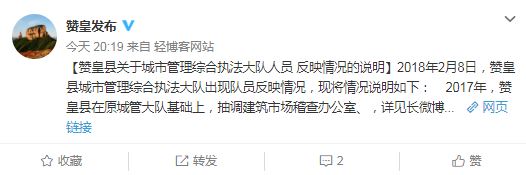 当晚,赞皇县政府发布官方微博解释,赞皇县城市管理综合执法大队所有职工的工资关系,已经按照相关规定审核完毕,按照原工作安排,2月8日工资款拨付至县住建局,2月9日发放工资。由于信息沟通不畅,年关将至,造成少部分执法队员出现反映情况发生。目前,全体队员均在岗在位,工作开展正常。