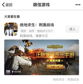 苹果拿出了“人气游戏”资源位推荐《刺激战场》,微信游戏中心也对这款游戏进行了一定程度的倾斜,TapTap更是壕气,直接首页大图强推。由此可见,《刺激战场》在渠道心目中似乎也更具期待。