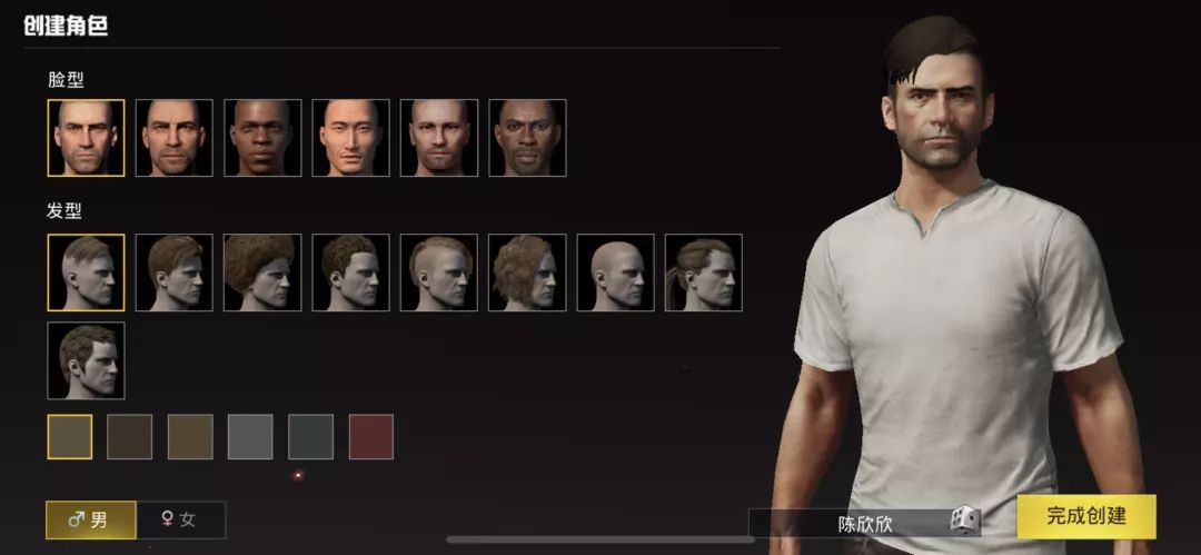 进入游戏登陆账号后,玩家需要做的第一件事就是选择角色容貌。在角色创建界面上,《刺激战场》的整体布局与《绝地求生》相似,选项上提供了性别、脸型、发型和发色4种,与原版相比唯独少了肤色选择。