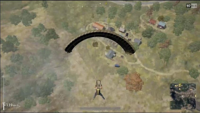 《刺激战场》的跳伞从远景到近景过程中,地面的加载非常流畅。镜头放置的距离和原版非常相似,视野足够广阔。此外,玩家在高空便能看清地上的建筑物,对远景模型的预载很及时,角色收伞落地的动作一气呵成。