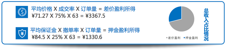 因此,从数据分析的角度,利用押金机制获取的盈利(包括撤单流转的差价收入)所占比例更加可观(尤其是低价订单)。