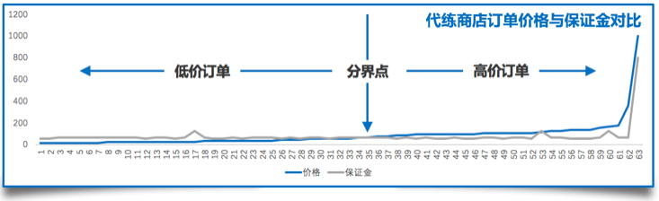 首先,我们发现,在代练服务的低价区中,押金高于价格的情况非常普遍。