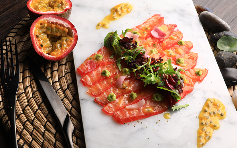 分子料理,想解释起来有太多可说之处,但简单来说,可以理解为用烹饪技术及物理、化学、生物等手法让一种食物具有另一种食物的特点,丰富了美食的体验性与趣味性。举个例子,比如下图中点缀在芝士酥上的树莓醋球,视觉上倒是更像人们印象中的鱼子。