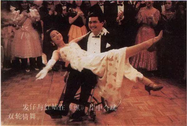 她和坐在轮椅上的周润发及张国荣跳的那段舞,