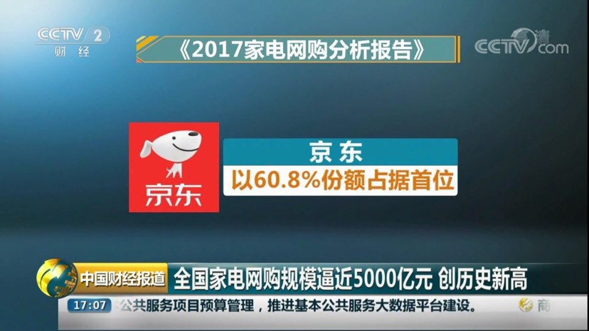 上述显示京东家电已经抢占潮头,为消费者提供涉及售前、售中及售后,涵盖咨询、管家及维修等环节的全套解决方案,而并非通过单纯的低价吸引消费者从而获得简单粗暴的增长那样。这样的京东家电,获得回报也在预料之中,报告显示,京东继续领跑市场,以家电网购60%以上的市场份额巩固了全渠道最大家电零售商之位。而京东家电的快速成长,也引发了央视的关注,并给予重点报道。