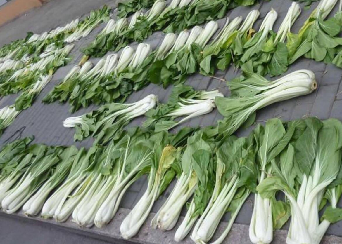 做冬腌菜没有许多讲究,一堆长梗白菜、盐、一个半人高的,底小肚大口阔的瓷缸就能做。每到冬至后,在老小区的院子和阳台里,多少都会有几排竹竿,挂着一颗颗白菜。和菜场里买到的普通大白菜不同,这些白菜梗长叶子小,表面经过了两天的日照。被晒得微微有些发黄发干。再在阴凉地方堆放一周,掐掉根茎,择掉烂叶子,就可以下缸了。