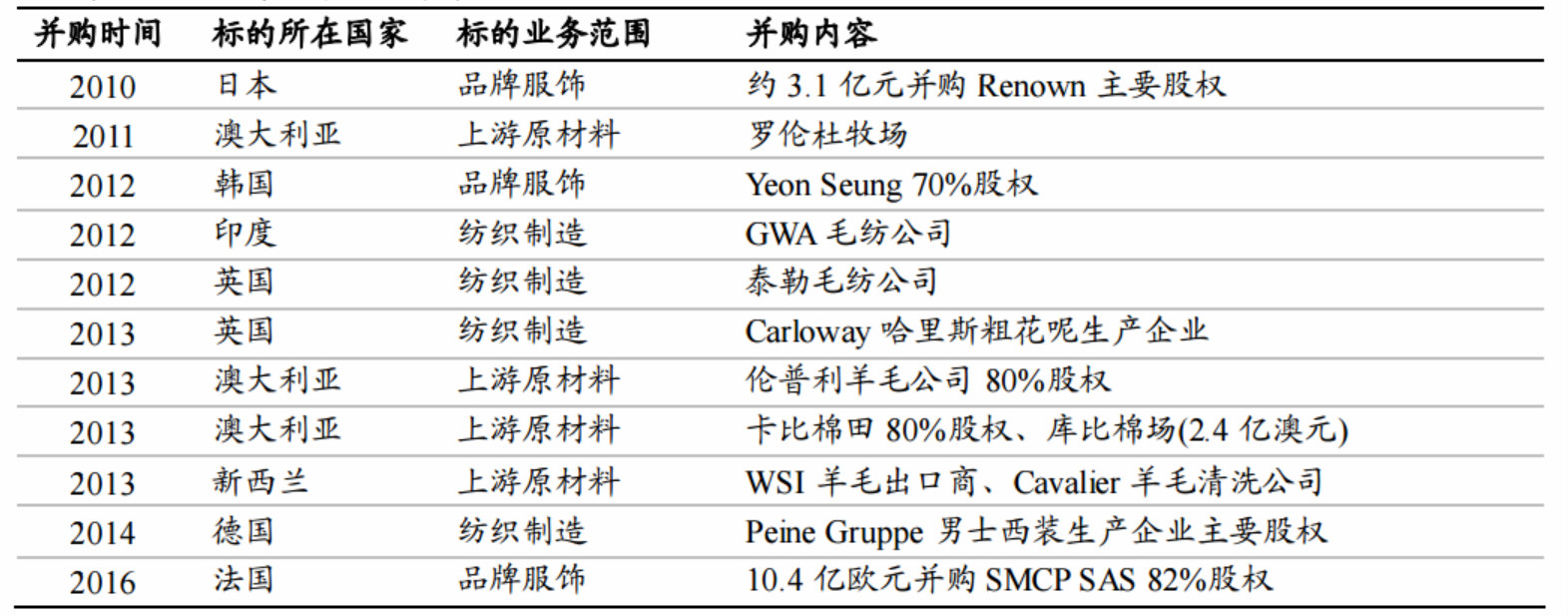 据其官网介绍,“公司已经成为集精纺呢绒面料及服装的设计、生产、销售于一体的大型纺织服装集团,拥有全球规模最大、最齐全的毛纺织服装产业链。”