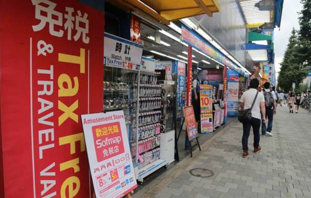 A:去贴有Japan. Tax-free Shop标签的商店,在同一时间同一商店购买满5000日元即可退税。