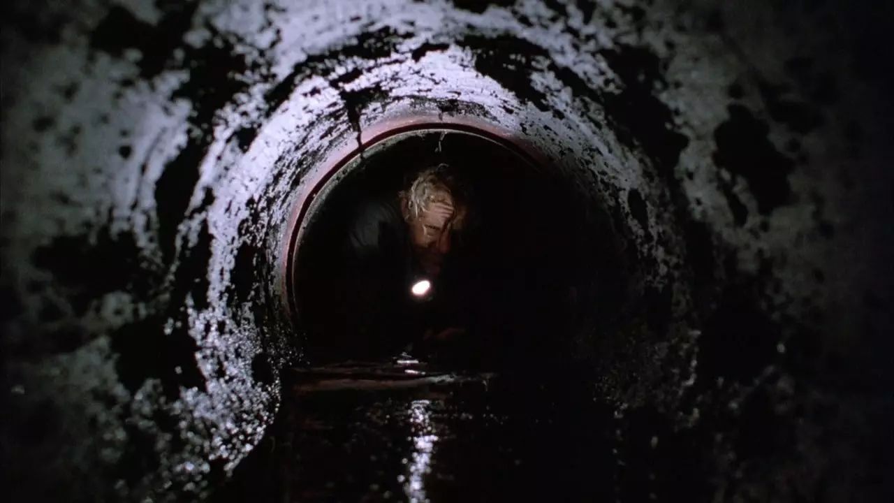 影片的最后,监狱长戳破海报,露出被遮掩的圆形洞穴。在一个大雨之夜,主人公安迪钻进洞穴,爬过五座橄榄球场的宽度,越狱成功。