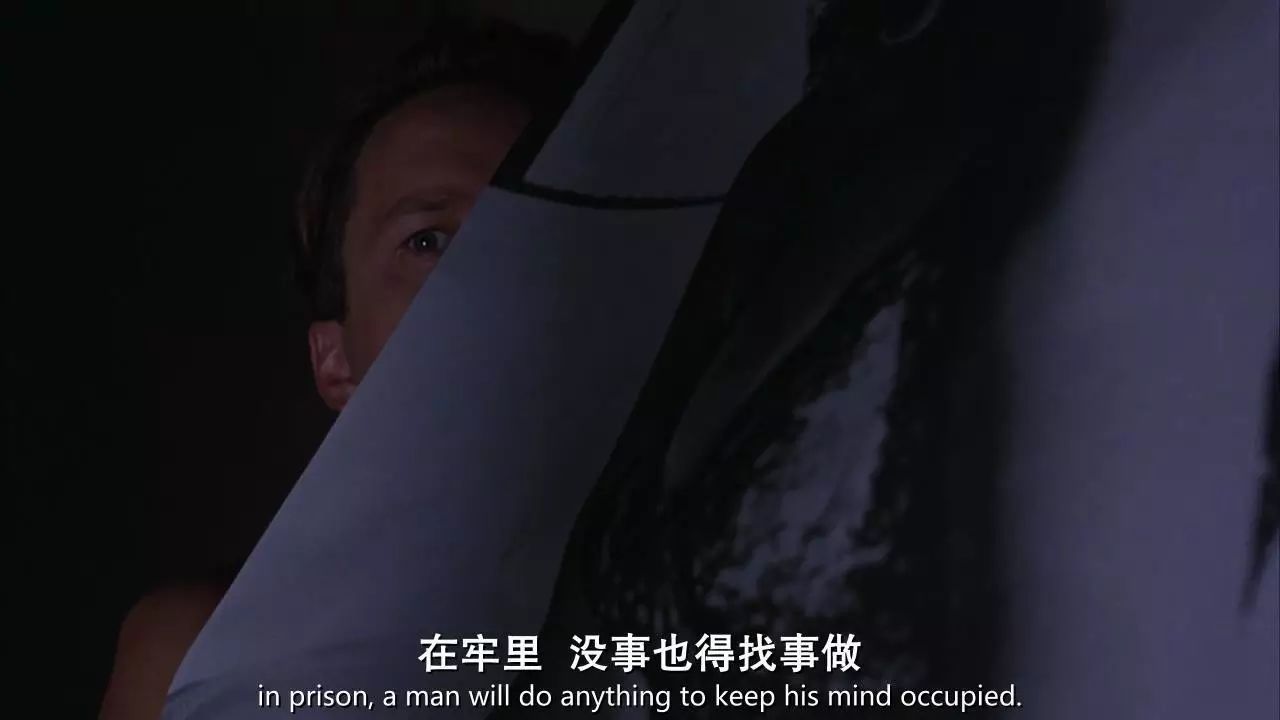 而在镜头层面上,这张海报和这个洞具有了某种象征意义。在女明星的海报背后打洞,象征跟女人做爱。对性爱的欲望,如同对自由的渴望,每天提醒着安迪,他还活着。