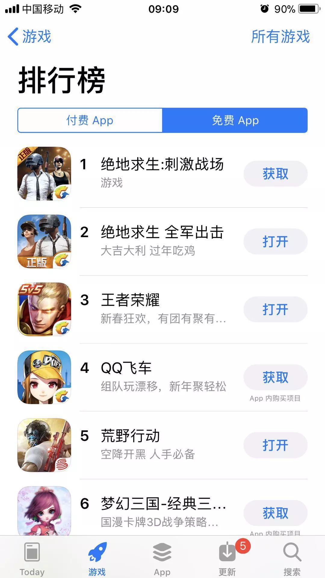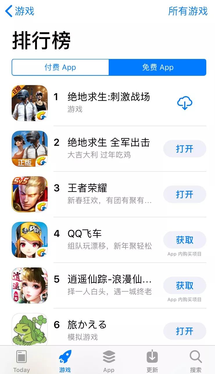 (荒野行动的排名在2月11日上午与下午出现变动)