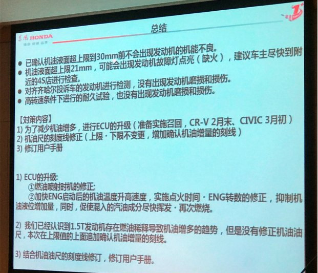 针对机油增多现象,东风本田随即给出了三条解决策略: