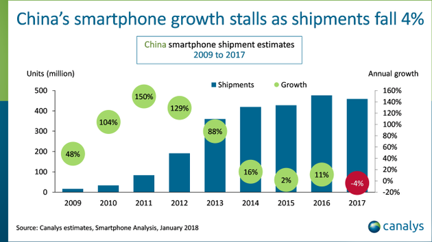 2017年是中国手机市场重要的转折之年,据市场分析机构Canalys提供的数据,国内智能手机市场2017年出货量下降4%,结束了国内智能手机八年高增长。而今年1月,国内手机再度下降散发了不好的信号,预示着今年或将延续去年的跌势,这对以国内市场为主要阵地的国产智能手机品牌来说是个极坏的消息。