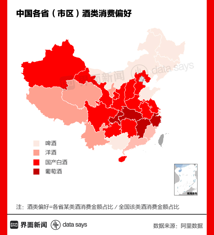 春节的饭桌上怎么少得了酒。从各地对不同酒类的偏好的来看,白酒征服了中国从西到东的大部分国土。