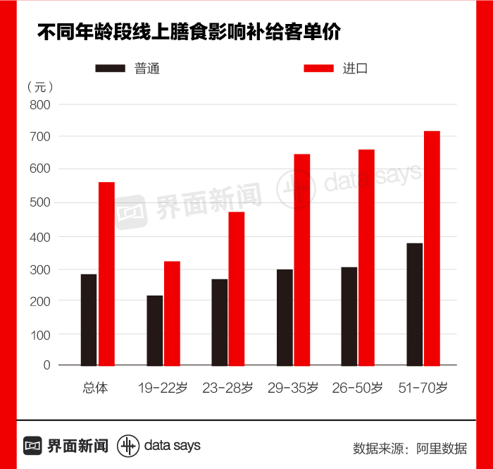 阿里数据显示,在购买膳食营养补充剂(维生素等)方面,51-70岁的中老年人群不仅购买频次高,客单价也是最高的。