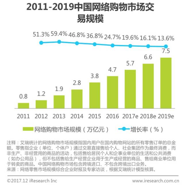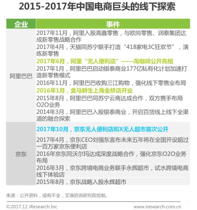 网络购物市场整体来看,品类布局、区域布局甚至跨境布局都已经相对完备,而近年来用户流量红利也逐渐消失,用户增长驱动的模式面临挑战。预计2017年,中国网络购物市场增长率将降至20%以下。新型零售业态成为电商入侵线下市场的切入点之一,如阿里巴巴的淘咖啡及盒马鲜生、京东的无人便利店等。