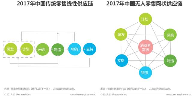 传统零售供应链呈现线性状态,各参与方之间依次进行信息交换,效率较低。而无人零售为代表的智能零售则逐渐构建联动网状供应链结构。消费者需求信息通过网状供应链传递给各方参与者,当需求发生变化时,各方联动进行相应的调整。网状供应链有利于消除各方信息不对称,达到高效信息传递,各方都作为链条中的信息枢纽,实现各方的利益最大化。