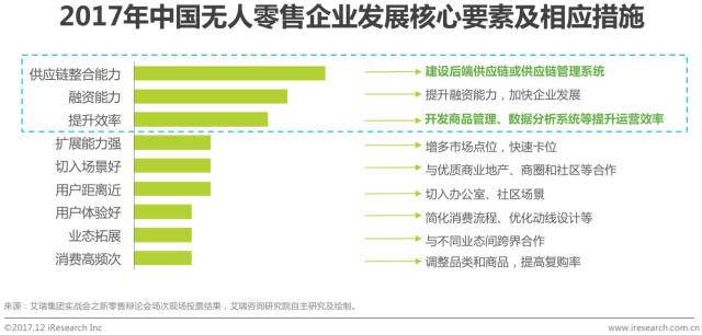 从整体来看,无人零售企业发展最核心的要素中,供应链整合能力、融资能力、提升效率是最为重要的部分。