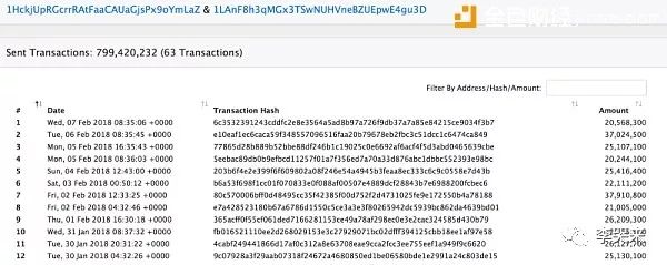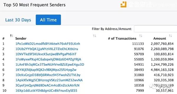 排名第十的地址为中国火币网在62笔交易中平均每笔交易量达1200万USDT!如此高的交易量和交易数据,实在是难以置信。难道是左手换右手的买卖?