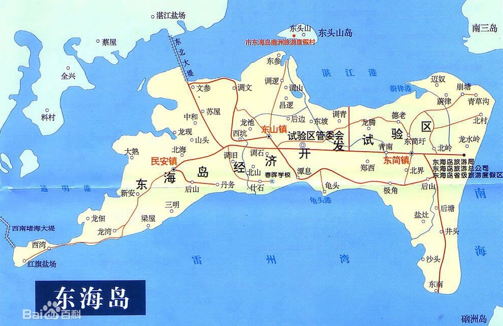从北向南横贯整个中国大陆,你会在尽头抵达雷州半岛,千百年来,这里始终与海南岛遥相呼应,成为中国南海海域境内的天然屏障。中国第五大岛屿——东海岛便位于半岛东部。历史上,东海岛为古雷州府辖岛,今属湛江市经济开发区。从外观来看,这是一个蝴蝶形状的岛屿。