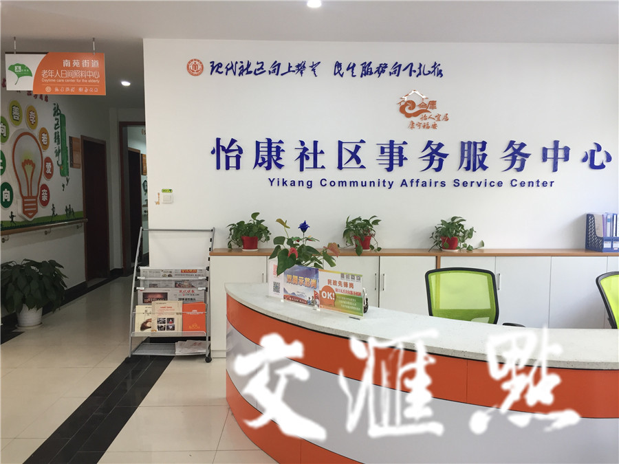 通过对老旧办公用房改造,去年底,怡康社区办公房一楼摇身一变:原本空旷不实用的接待大厅没了,一间间宽敞又明亮的康复理疗室、日间照料室、助餐室、活动室取而代之。进门左手往前,还有可坐下来洗浴的助浴室,养老机构的专业社工随时可为有需要的老年居民提供康复训练,一位专业护士值守进门右手的怡康社区事务服务中心吧台,给老人量血压,答复咨询,亲切熟练。