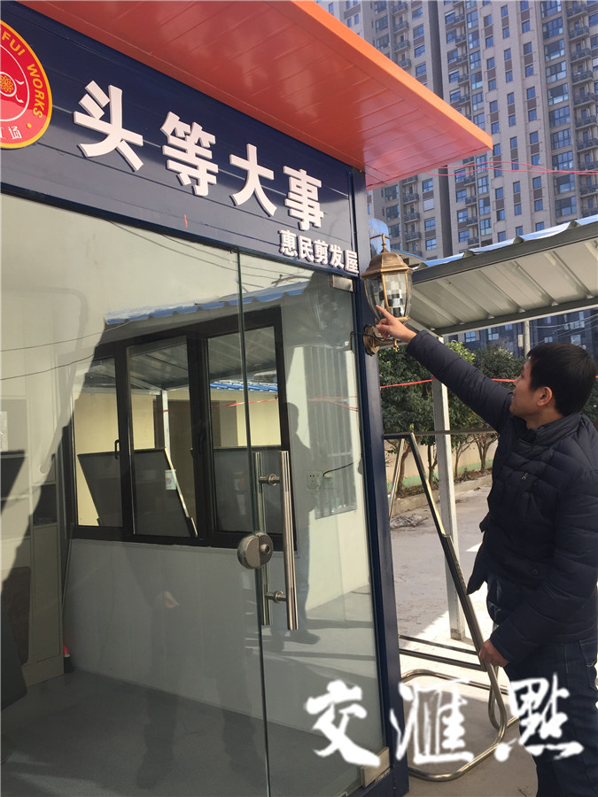 社区后院,簇新的“惠老理发屋”即将启用。玻璃门通透,门头上书四个字“头等大事”,建邺区民政局刘科长透露,这也是未来建邺社区综合体养老服务的标配,“让行动不便的老人在社区享受一条龙服务,不过十分钟,就能理一个清爽的发型。”隔壁便是淋浴室,俩者形成配套。