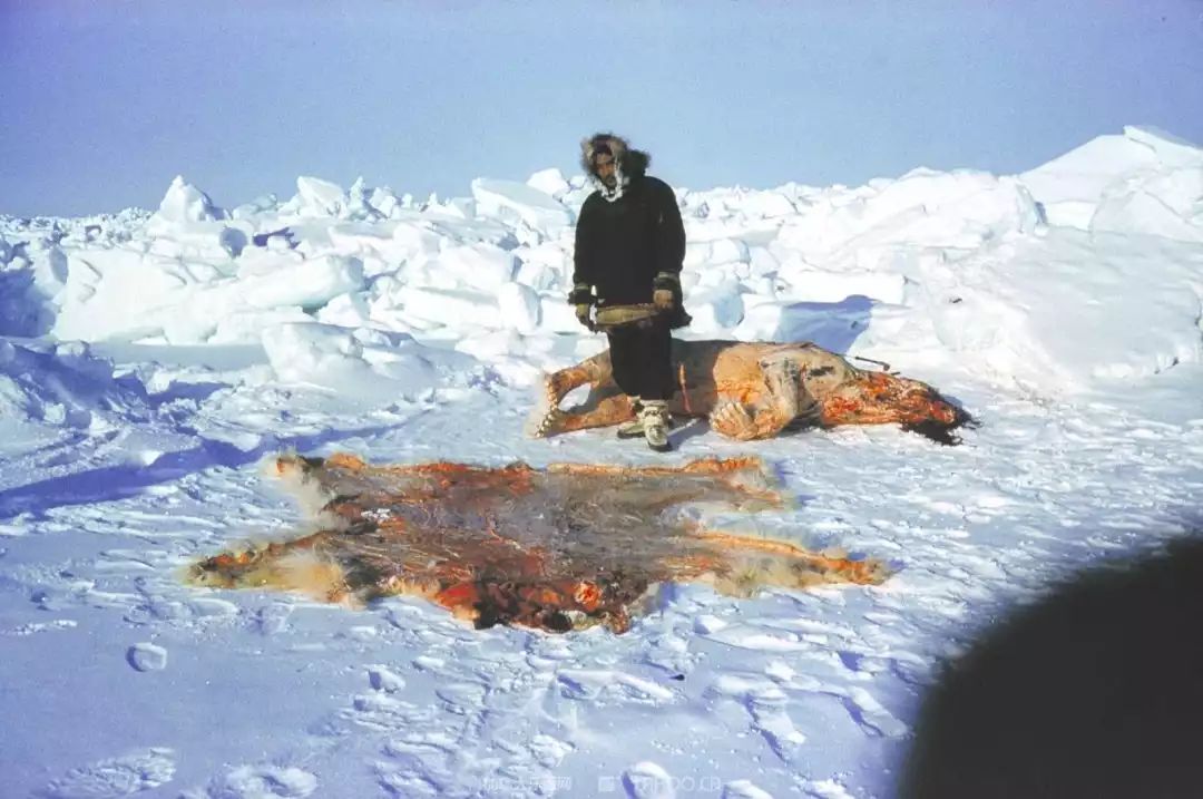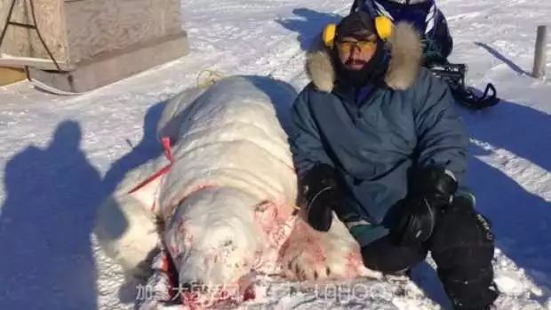 这个猎人名叫Darrell Voisey,他已经连续三年拿到了政府颁发的北极熊猎杀证。今年,他用一块海豹肉成功捕到一头北极熊。他非常自豪地将这头罕见的“战利品”运回了自己的村子,当地人都跑出来参观祝贺,每次有人捕获到北极熊都是如此。