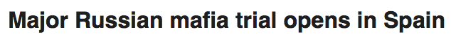 【俄罗斯黑帮洗钱案在西班牙开审】俄罗斯议员Vladislav Reznik和另外17名嫌疑人因被控为一个俄罗斯黑帮集团大规模洗钱而在马德里开审。