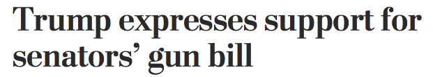 【特朗普表示支持加强枪支管制提案】美国总统特朗普周一表示支持一项枪支管制提案,五天前佛罗里达州一高中的枪击事件导致17人丧生,几十人受伤。