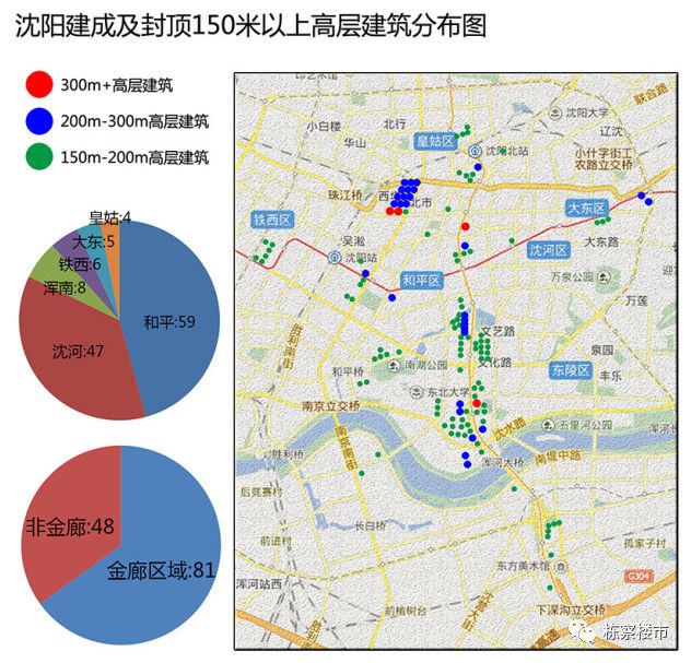 “150米+”高层建筑分布图 来源:沈阳摩天汉