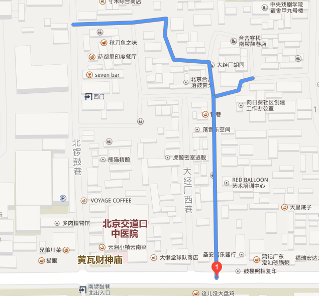 不过首先,这个店并没有小院,第二,所谓“大经厂胡同”有误,大经厂胡同在大经厂西巷以东,可通北锣鼓巷,且比大经厂西巷要阔多了——