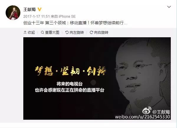 “将来的电视台,也许会感谢现在正在拼命的直播平台。”与乐视贾跃亭一样,王献蜀做的PPT也是相当棒的。不少人认为,“巴士在线”董事、前CEO王献蜀“出走”给上市公司留下的15亿元“窟窿”,是因为直播平台烧不起的钱。